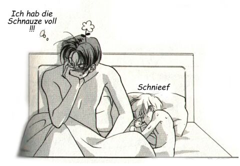 4. Liebesgefasel des Seme Die Aufgabe des Seme besteht eigentlich die meiste Zeit darin, die Nerven zu bewahren bei solchen Kleinkindern, ein ständig bös grinsendes Gesicht zu machen und dabei auch noch einen hoch zu bekommen! (Ich würde die Krise bekommen!) Mit einer meist stattlichen Statur (auch unten rum) fällt er über die kleinen Uke oder Shota (besonders niedliche Heuler) her und wütet mit gar übler Dominanz (hehehehe). Beispiele?